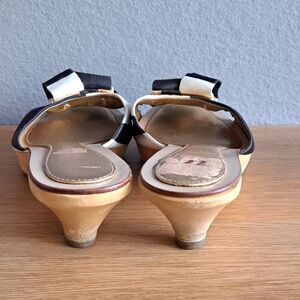 Kate Spade Vintage Women’s 8 Black Bow Kitten Heel Open Toe Sandals Clogs Wood