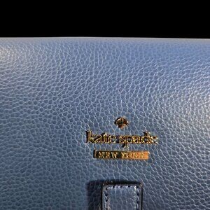 This spacious Kate Spade tote in Conselliblu features a sleek leather design with gold-tone accents. Ideal for organized storage and a polished look.