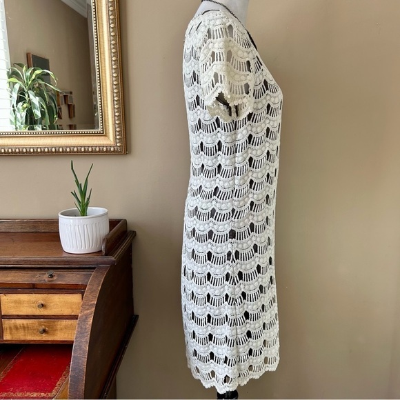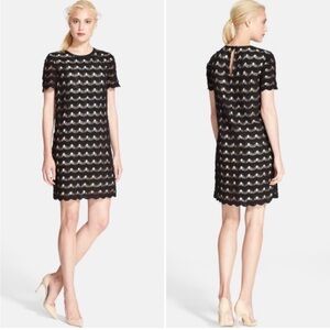Kate Spade Virginia Ivory Lace Shift White Mini Dress Scalloped Short Sleeve 8