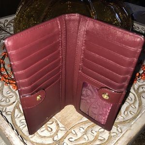 Used a little when I wore my kate spade handbag. Near perfect condition has some wear on the inside creases as pictured. Loved this little wallet with my handbag it fits so well! (Handbag listed)