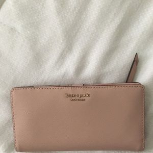 Light Blush Pink-12 slots-4 money or receipt slots and one backside zipper slot. Like new worn three times!