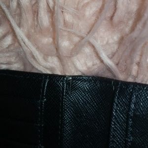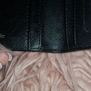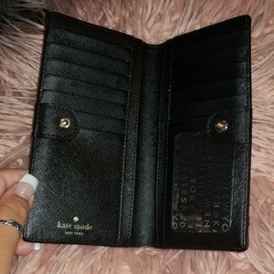 Didn't use very much, has minor wear and tare. 13 slots for cards and 1 open for ID card or Drivers license. 4 slots to store things in. Does have a clip to snap close. Zipper pocket in back. Red and Black are main colors. Has Orange and gold as well.