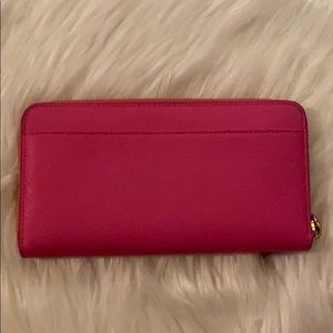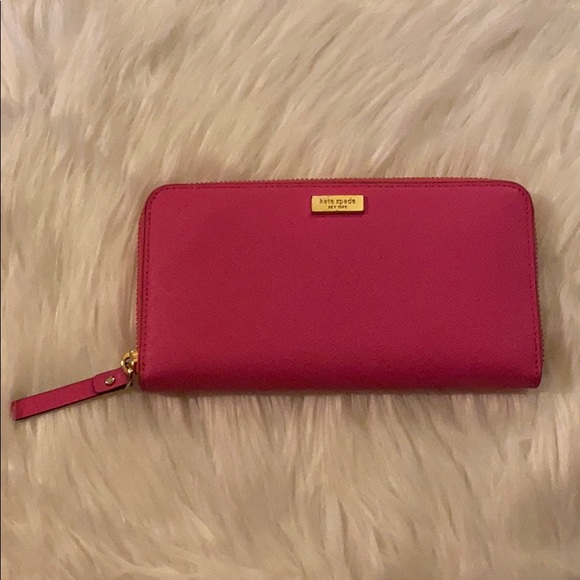 This Fuchsia Kate Spade Wallet is in near perfect condition from a smoke-free home with minor scratches on the emblem as well as a few light markings.