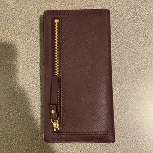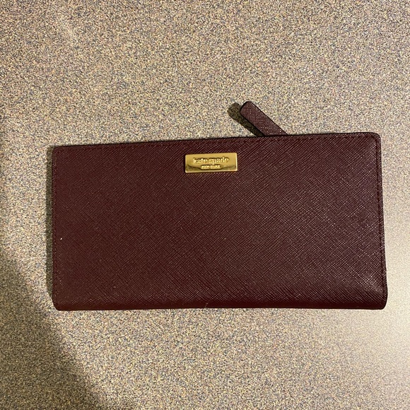 Kate Spade burgundy medium wallet with snap closure.