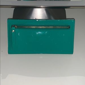 Gently used teal Kate Spade wallet. Super cute bow design in front, and change pocket in the back. Plenty of credit card spots and room for ID inside.