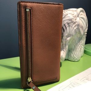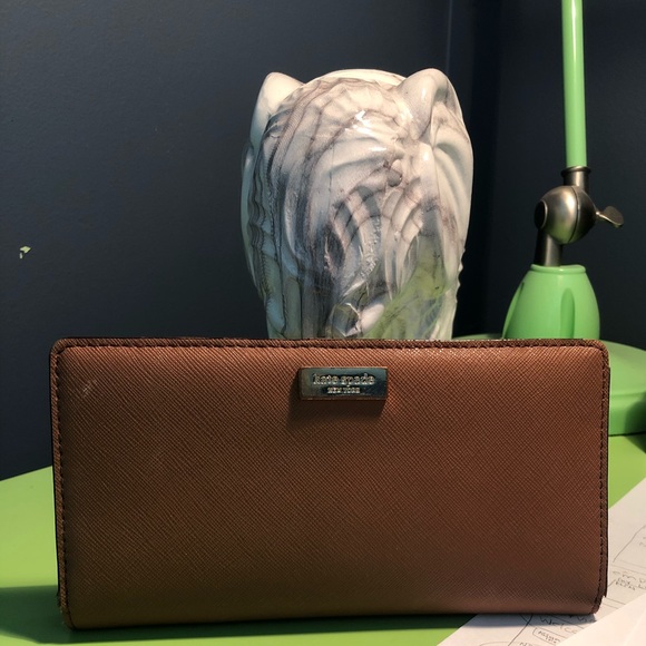 Large Kate Spade wallet. Fits at least 13 cards, bills lie straight, and coin pocket in back. Neutral brown color is versatile.