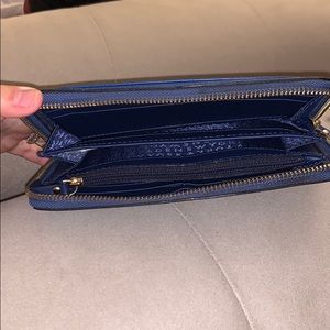Gently used wallet. Lots of functionality. Slots for cards and zipper for coins.