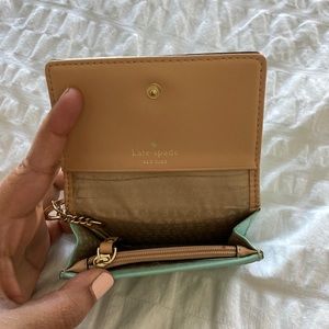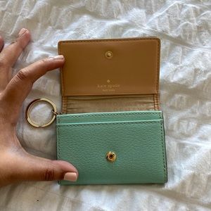 Basically brand new mint blue Kate Spade card wallet. I only used this twice and its in great condition. No creases or stains and no wear and tear! You can add your keys to this wallet as well so its easier to carry! $30 OBO. Venmo or cash only please!