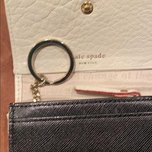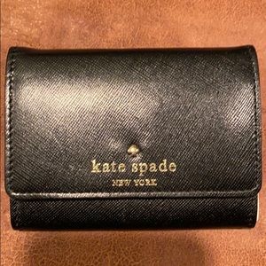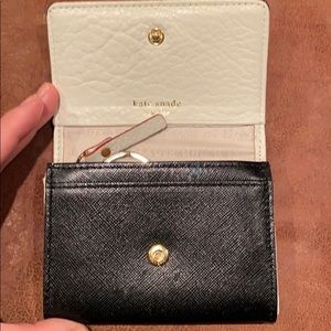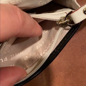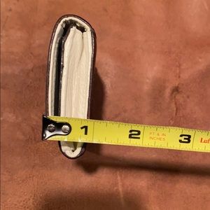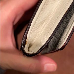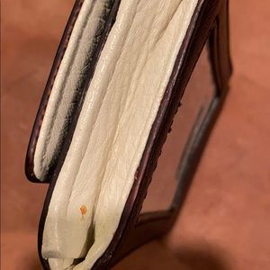 Light brown stains on inside coin pocket and outside cream side folds- see pictures