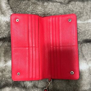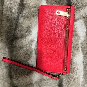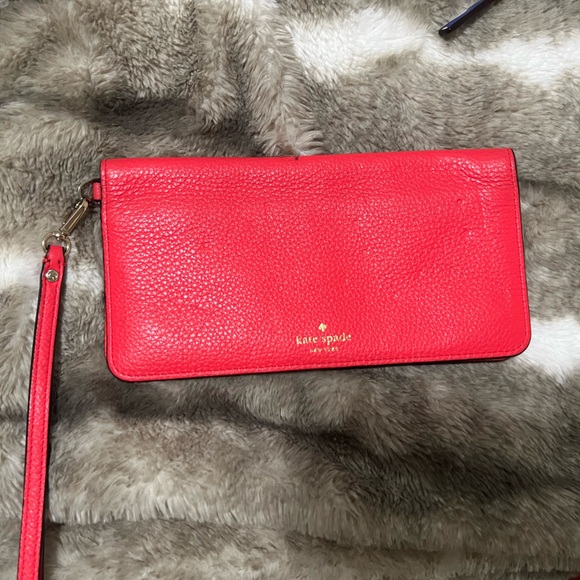 Coral Kate Spade Soft Leather Wallet, has some wear but overall in good condition.