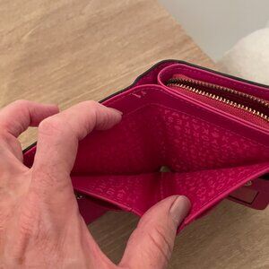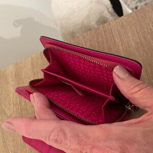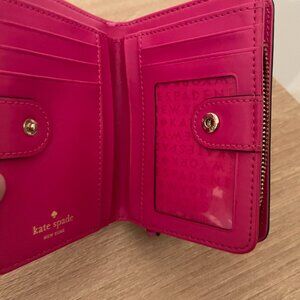 Hot pink leather Kate Spade Wallet with coin zip, card slots, and bill sleeve - new condition