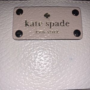Authentic Medium size Kate Spade wallet. Some wear and tear, some stains and a tiny blue dot on the front (shows in pic) but may be able to be cleaned. No rips or holes.