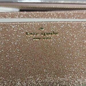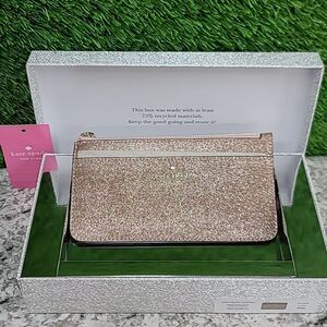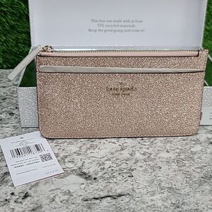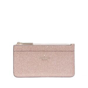 Kate Spade Wallet Tinsel Boxed Large Slim Card Holder in Glitter, Rose Gold
