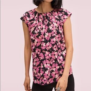Kate Spade Wallflower Tie Neck Tieneck Blouse Top Shell Pink Black Floral Printed