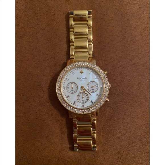 Color is gold. Does need a new battery. This was worn only a handful of time and is in wonderful condition. It also has a lovely pearlescent background. I’ve made sure to take very good care of this beauty.