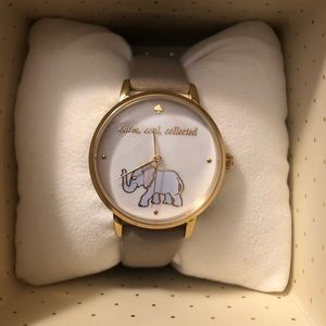 Brand new elephant Kate Spade watch. Battery works and comes with original box and pillow. Pretty mother of pearl face with pretty grey colored leather band.