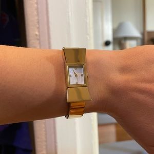In good condition, Kate Spade watch. Beautiful watch with extra links to customize size. Only worn a handful of times. If purchased, watch would need battery change and a check up as it has not been used for years.