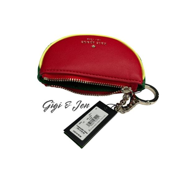 Kate Spade Watermelon Coin Purse Keychain FOB Bag Charm Leather Red