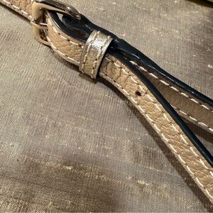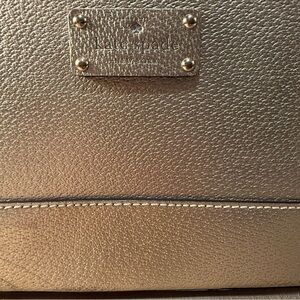 This is a Kate Spade Wellesley Hanna crossbody bag in gold boarskin embossed cowhide leather.