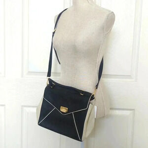 Kate Spade Wesley Place Laurel Satchel in Envelope Black & Ivory colors.Leather bag with Flap over clasp closure & pink fabric lining. Hold tone hardware. Interior 2 slip pockets and 1 zipper compartment.
