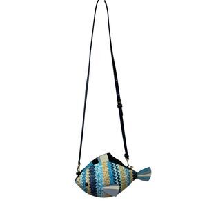 Kate Spade What A Catch 3D Fish Crossbody Bag Blue Multicolor Straw + Leather