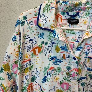 Kate Spade White Coastal Printed Button Front Maxi Night Dress - Size S - EUC