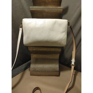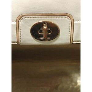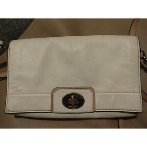 Kate Spade White Leather Crossbody Bag With Striped Lining & Turn Lock Closure