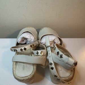 Kate Spade White Leather Straw Sandals With Wrap Around Ankle Straps Size 10