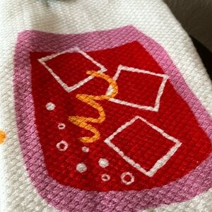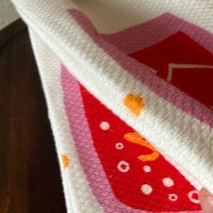 Chic kitchen towel with a vibrant red and pink design. Perfect for adding a pop of color to your kitchen.