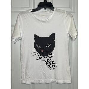 Chic short sleeve tee. Features bold black cat graphic. Perfect for casual wear.