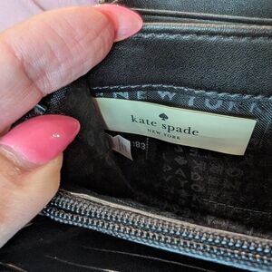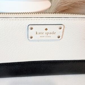 Elegant Kate Spade wallet in white and black. Features a sleek design smooth zipper. in excellent pre-loved condition. has very tiny pinhole sized marks on front white leather. see all photos. clean inside.
