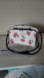 Chic crossbody with floral design. Features white base and navy strap. Gold-tone details add elegance.