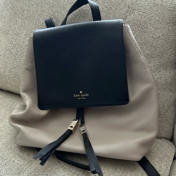 Beige pebble leather with black accents . New condition but no tags