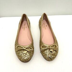 Designer Kate Spade New York “Willa” Gold Glitter Ballet Flats – Classic Round‑Toe Everyday & Party Shoes