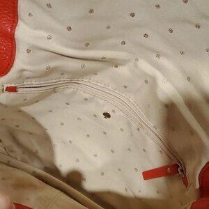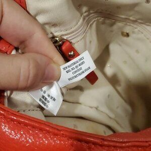 very soft lambskin; metal chain; got some stains as pictures described, still in good condition; orange color