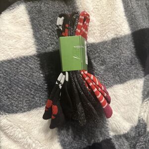 Kate Spade Womens 3-pack Crew Socks 3pk Apples Stripes Black Red Size 4-10 M