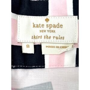 Kate Spade womens 8 pencil skirt midi pink black abstract print designer chic workwear office elegant polished feminine boutique style classic KSNY skirt lightweight unlined modern fashion statement piece bold print career wear stylish midi pencil skirt Kate Spade clothing