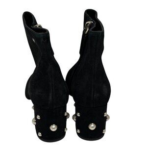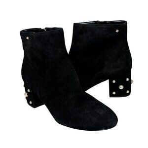 Kate Spade Womens Black Suede Taraji Faux Pearl Block Heel Bootie size 8.5 NEW