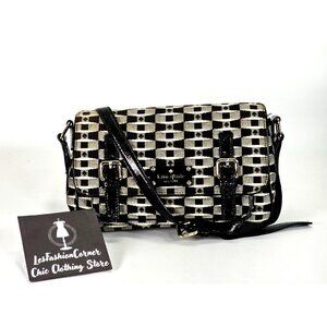 Kate Spade Women's Black White Fabric Essex Scout Purse Messenger Small 1875