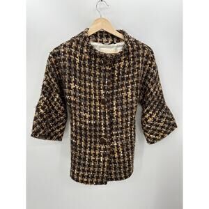 Kate Spade Womens Brown Tweed Annie 3/4 Sleeve Jacket Coat Wool Belt Size XS/S