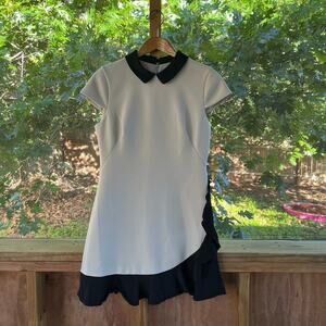 Kate Spade Women's Cream And Black Trim Ruffle Hem Dress Size 6
