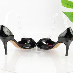 Kate Spade Womens Gina Sandals Size 7 Black Patent Bow D'Orsay Heel Dress Shoes