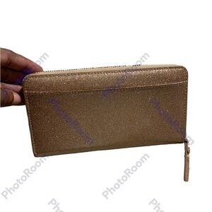 Kate Spade Women's Glitter Gold Zip-Around Wallet – Sparkle Continental 8x4