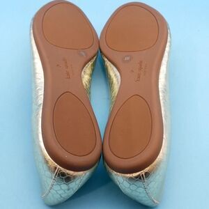 Gorgeous gold croc embossed Kate Spade flats with beautiful pearl accents. The size 6 leather shoes are in very good preowned condition. They would be perfect for a wedding or special event.