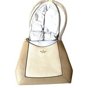 Kate Spade Womens Pebbled Leather Lena Sand Colorblock Large Shoulder Bag New
