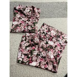 Kate Spade Womens Photoreal Bouquet Pajama Set Size Medium 3/4 Sleeve Crop Pants