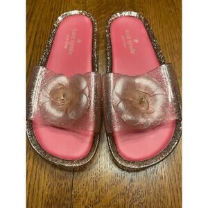 Kate Spade Women's Pink Glitter Jelly Slide Sandals Size 6 Flower Accent