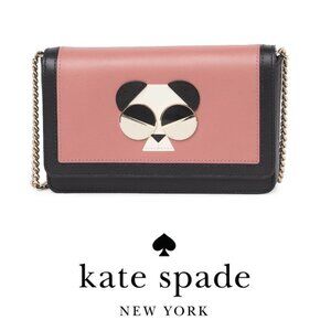 Kate Spade New York Pink Leather gentle panda chain crossbody wallet NWT