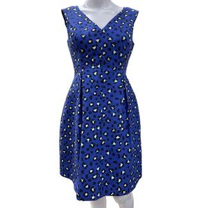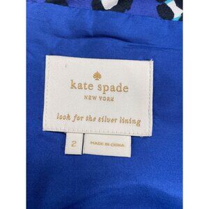 This is a beautiful Kate Spade Purple Dress with a sort of geometric design. It is in Great Condition. It has a fit and flare design with pockets and a back zipper. The dress is 77% Cotton and 23% silk and the lining is 100% polyester. It is Size 2. No defects. Length 34", Shoulders 16", pits/chest 16.5", waist 13", hem 24". SKU 1117