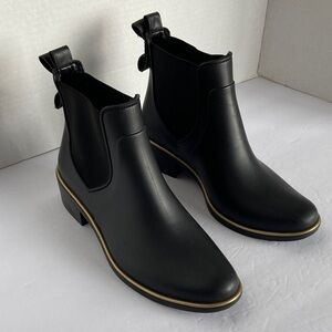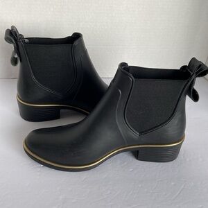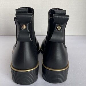 Kate Spade Women's Rain Boots Solstice Ankle Bootie Black Size 7 Gold Accent